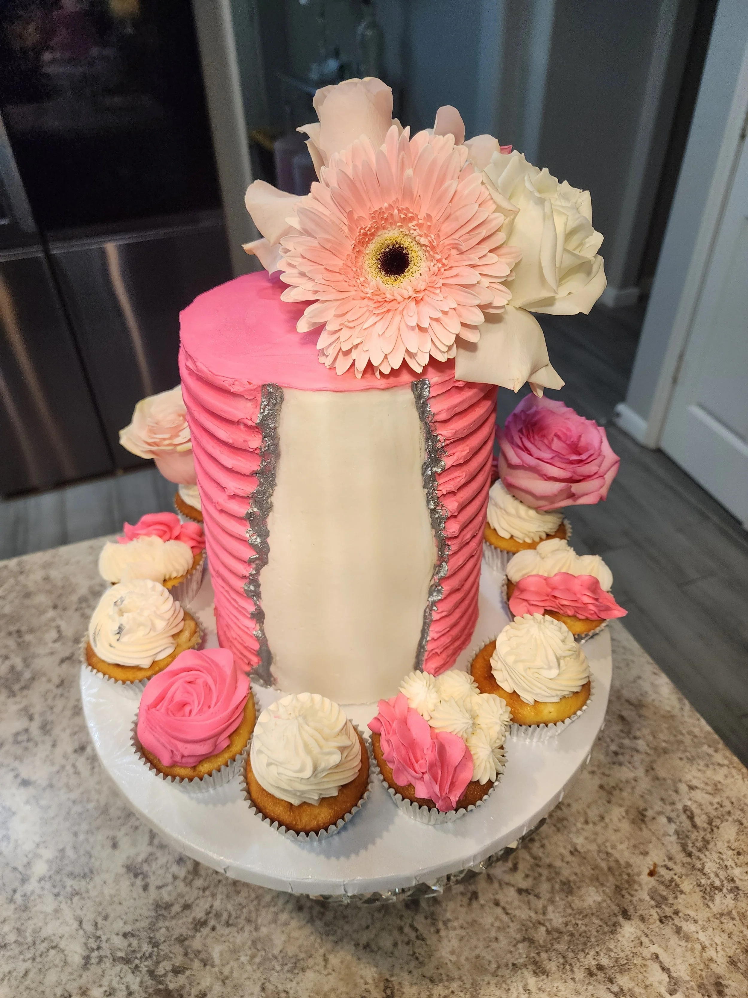 This lux board comes with one (1) 6 inch (2 layer) cake and 12 matching cupcakes with a two color minimum and 1 cake flavor per board. The client agrees to give full creative control to IOTreats once purchased.